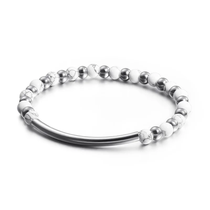 Buy Fashion Female Bracelets Silver Stainless Steel White Beads Bracelets Jewelry
