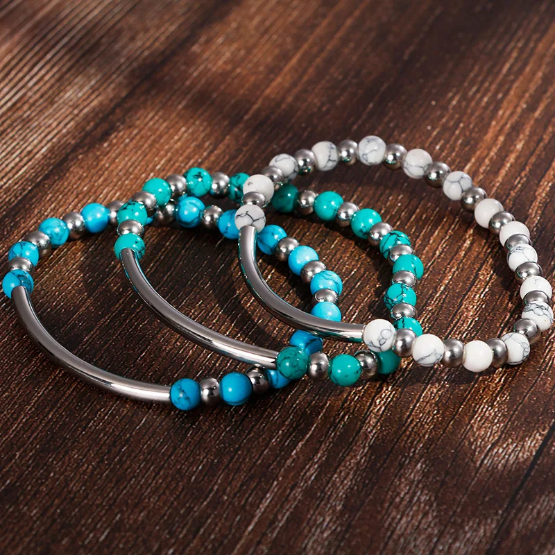 New Fashion Female Bracelets Silver Stainless Steel White Beads Bracelets Jewelry