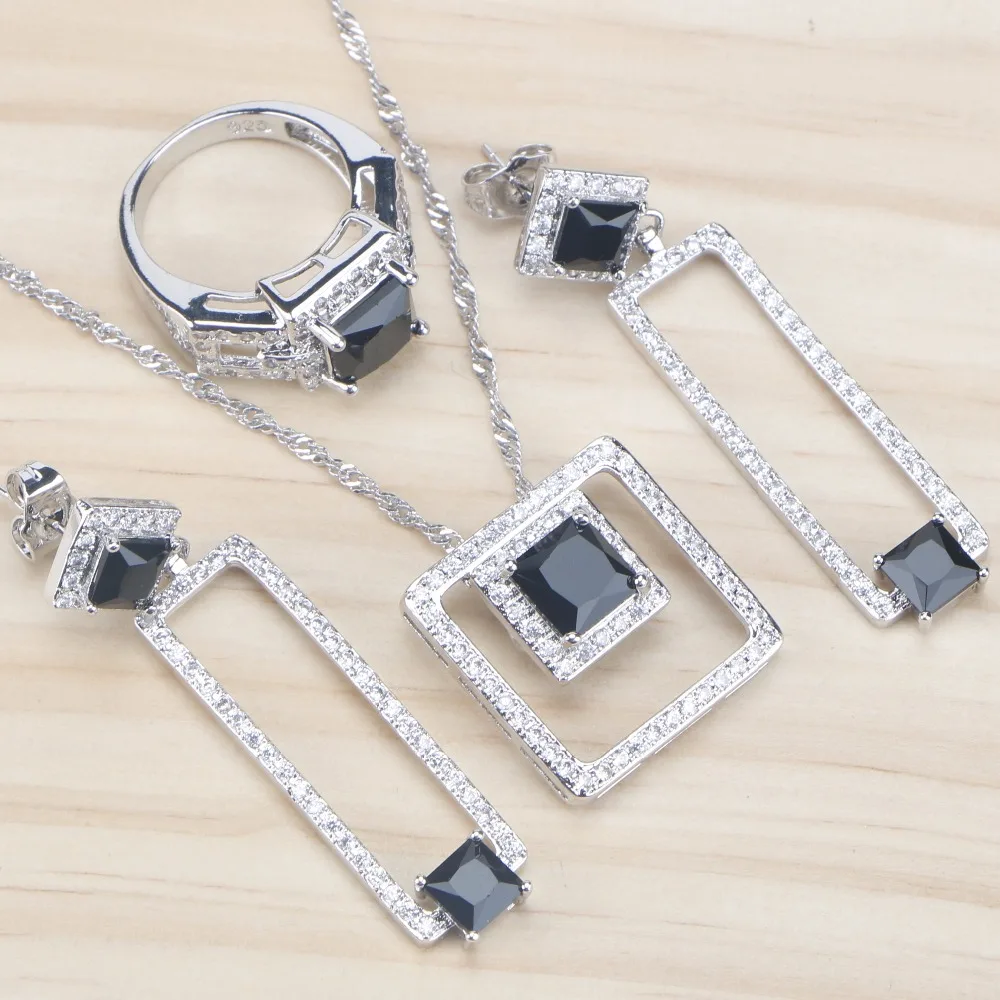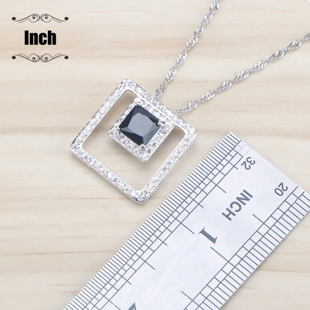 New Black Stone Zirconia Bridal Jewelry Sets Silver 925 Jewelry With Pendant Necklace Earrings For Wome