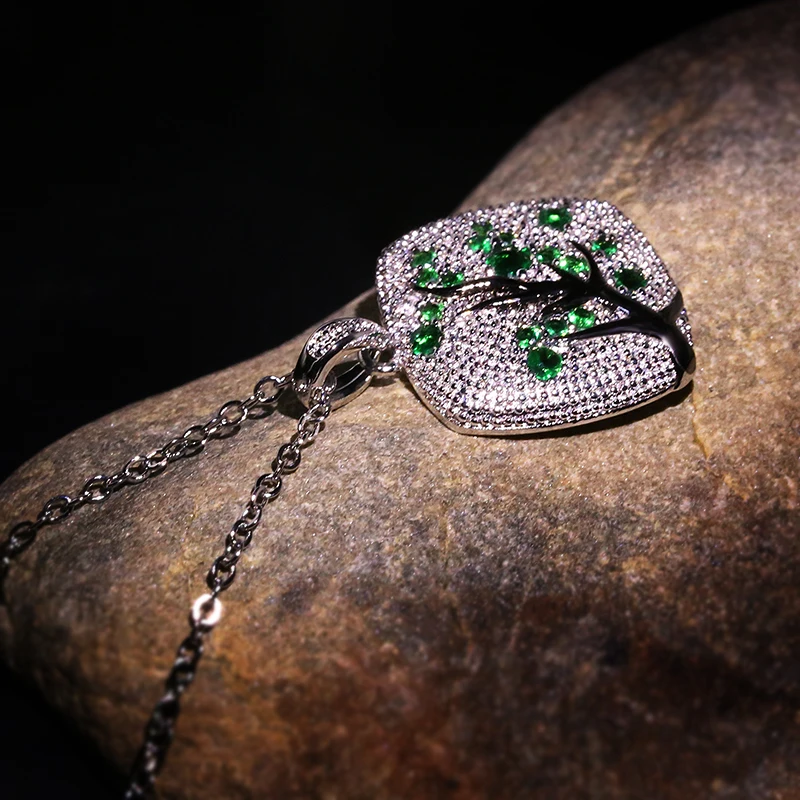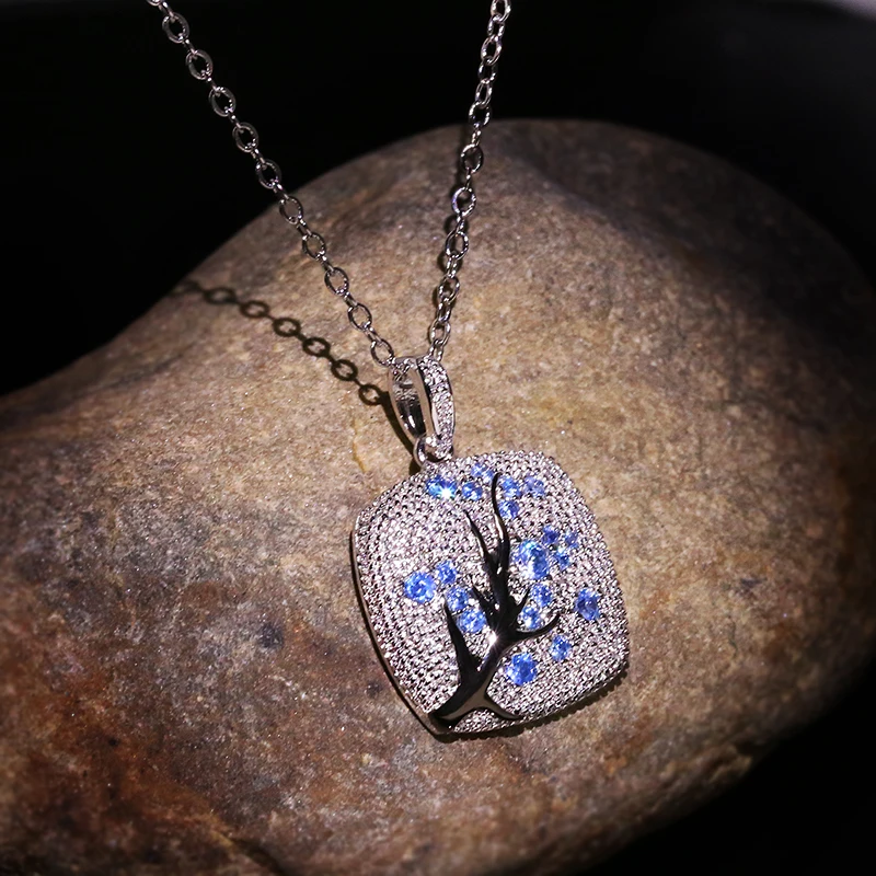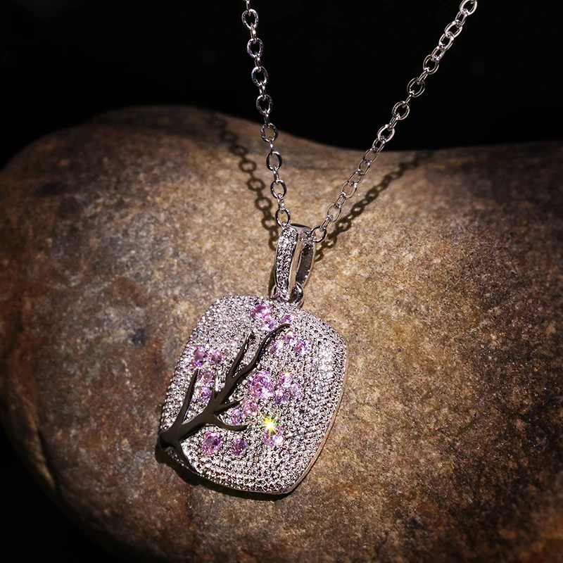 Promo Fine Jewelry red zircon Leaves branch Pendant For Women branch Sparkling Pink Cherry Tree CZ Delica
