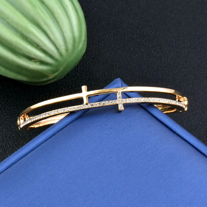 Promo SINLEERY Fashion Hollow Cross Bangle Cuff For Women Rose Gold Silver Color Crystal Bracelets Women